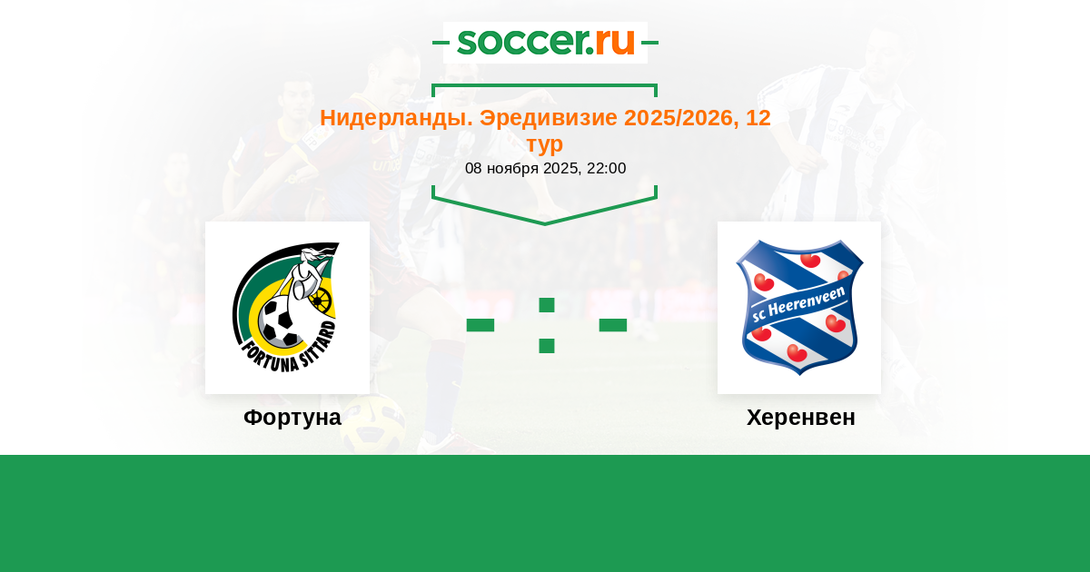 Нидерланды. Эредивизи 02.11.2024 Фортуна Логотип футбольный клуб Фортуна (Ситтард) 3:0 Логотип футбольный клуб Херенвен Херенвен