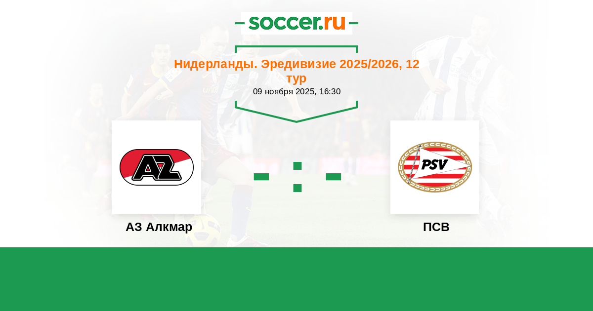 Нидерланды. Эредивизи 12.12.2009 ПСВ Логотип футбольный клуб ПСВ (Эйндховен) 1:0 Логотип футбольный клуб АЗ Алкмар АЗ Алкмар