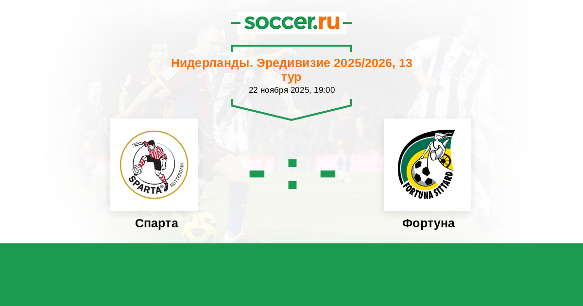 Нидерланды. Эредивизи 28.09.2019 Фортуна Логотип футбольный клуб Фортуна (Ситтард) 0:0 Логотип футбольный клуб Спарта (Роттердам) Спарта