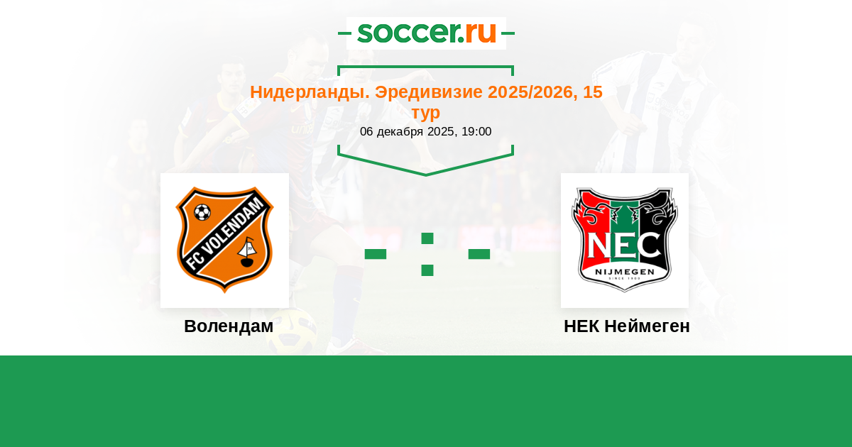 Нидерланды. Первый дивизион 15.09.2020 Волендам Логотип футбольный клуб Волендам 1:3 Логотип футбольный клуб НЕК Неймеген НЕК Неймеген