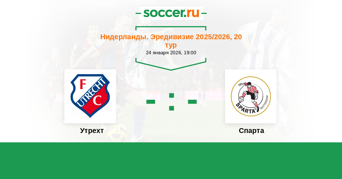 Нидерланды. Эредивизи 23.01.2022 Спарта Логотип футбольный клуб Спарта (Роттердам) 0:3 Логотип футбольный клуб Утрехт Утрехт