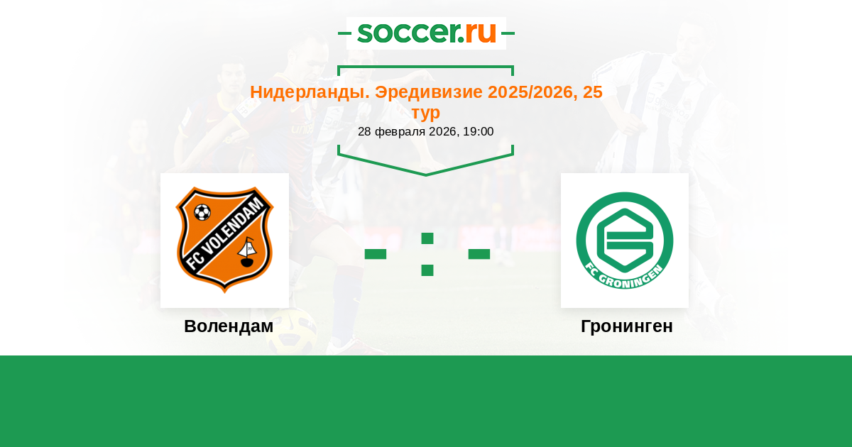 Нидерланды. Эредивизи 13.12.2025 Гронинген Логотип футбольный клуб Гронинген 3:0 Логотип футбольный клуб Волендам Волендам