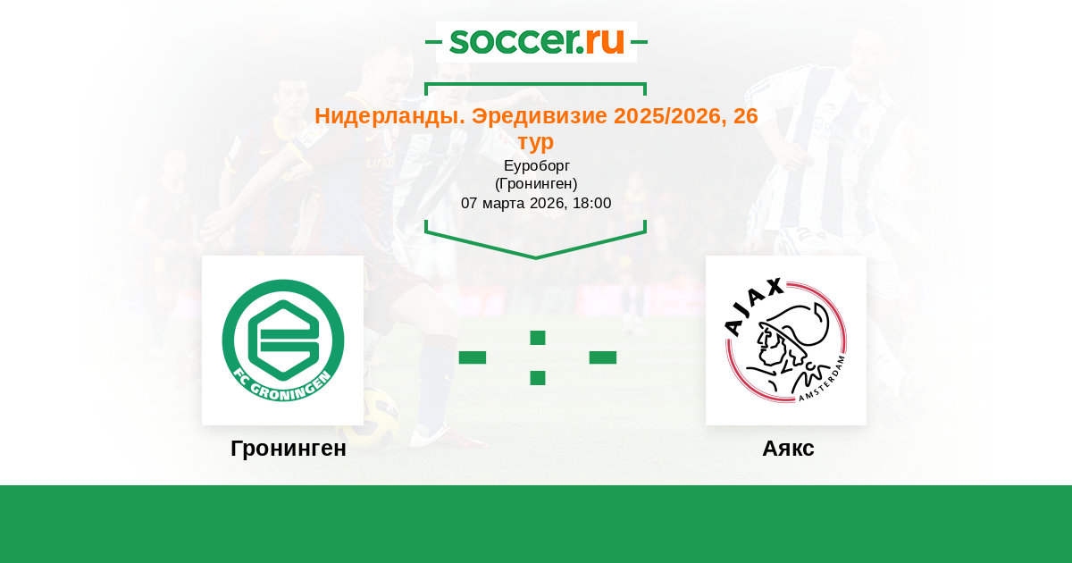 Нидерланды. Эредивизи 02.12.2025 Аякс Логотип футбольный клуб Аякс (Амстердам) 2:0 Логотип футбольный клуб Гронинген Гронинген