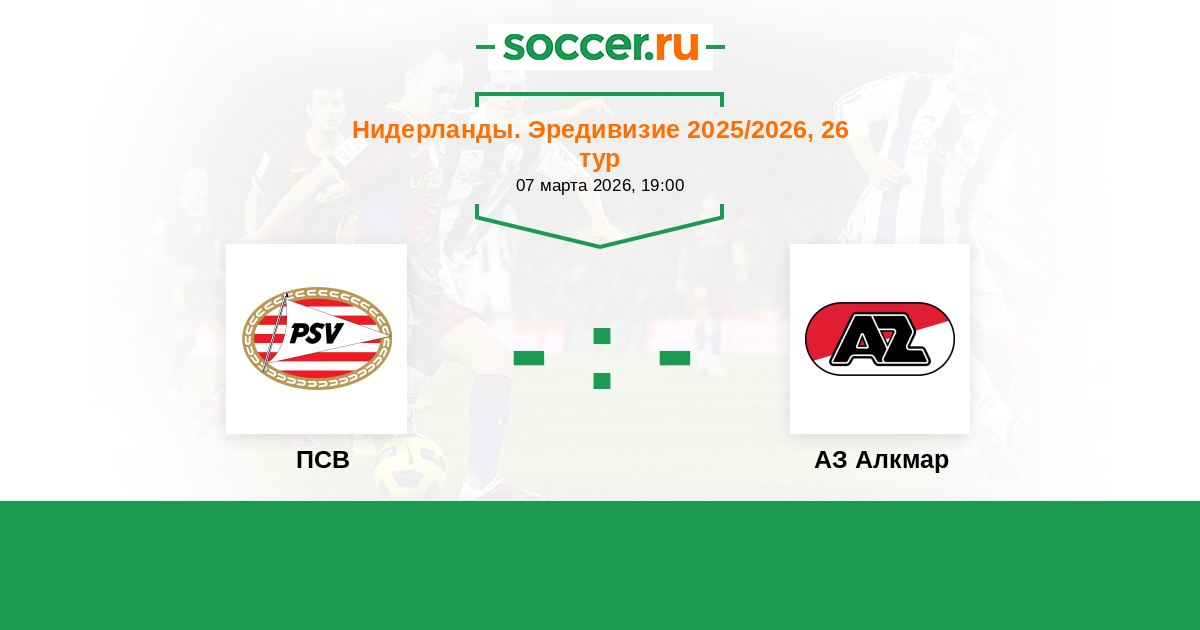 Нидерланды. Эредивизи 21.03.2021 АЗ Алкмар Логотип футбольный клуб АЗ Алкмар 2:0 Логотип футбольный клуб ПСВ (Эйндховен) ПСВ