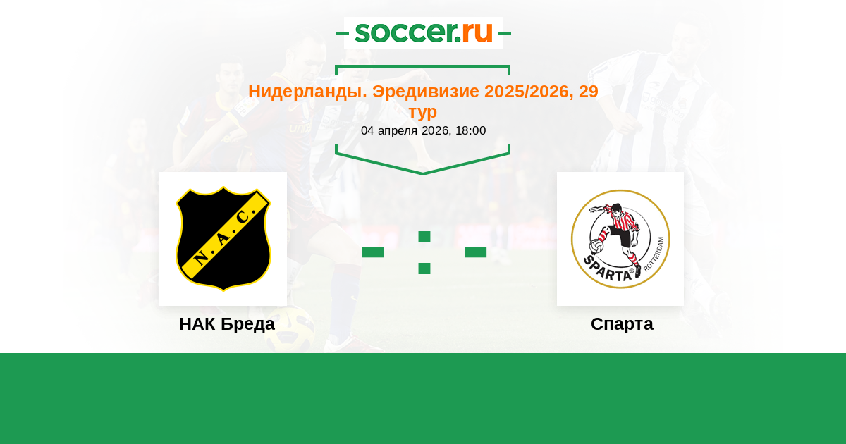 Нидерланды. Эредивизи 18.04.2018 Спарта Логотип футбольный клуб Спарта (Роттердам) 2:1 Логотип футбольный клуб НАК Бреда НАК Бреда