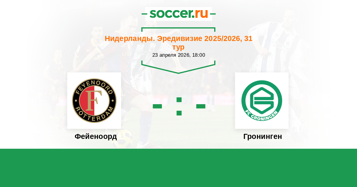 Нидерланды. Эредивизи 02.04.2025 Фейеноорд Логотип футбольный клуб Фейеноорд (Роттердам) 4:1 Логотип футбольный клуб Гронинген Гронинген