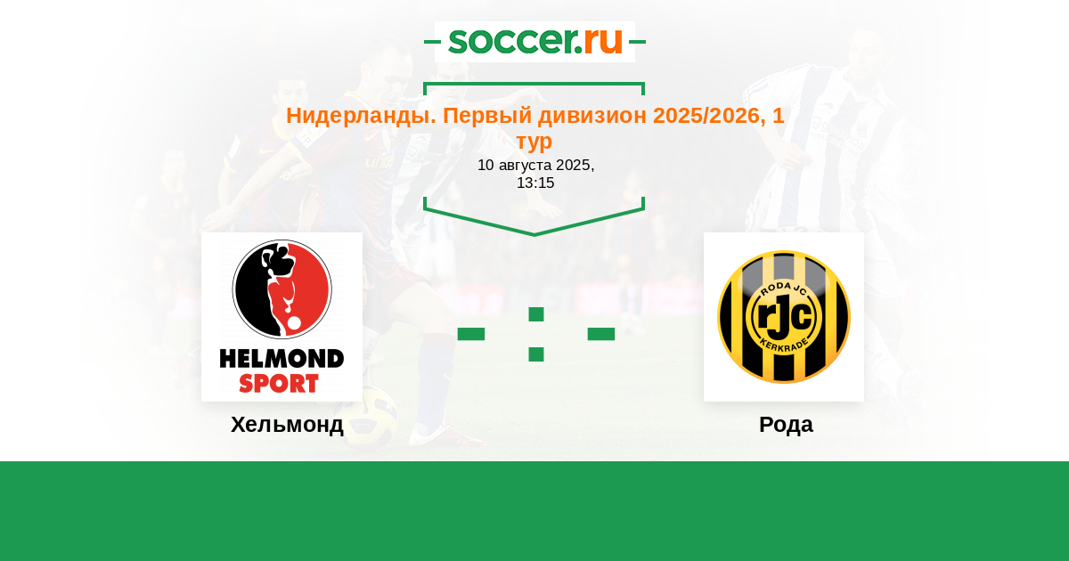 Нидерланды. Первый дивизион 11.08.2023 Рода Логотип футбольный клуб Рода (Керкраде) 4:1 Логотип футбольный клуб Хельмонд Хельмонд