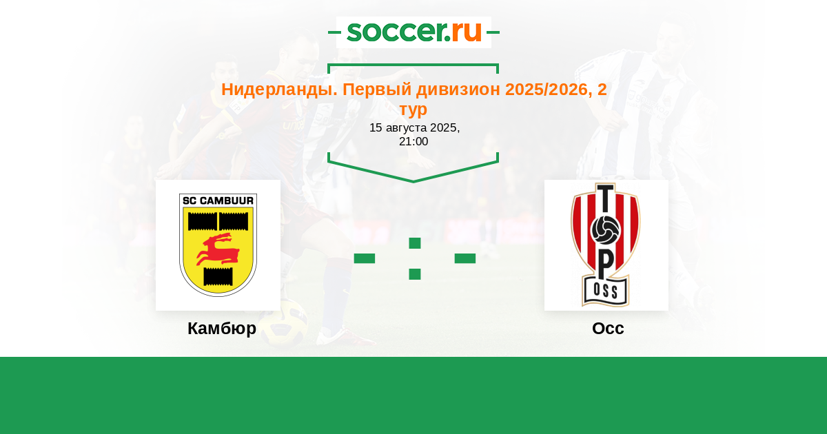 Нидерланды. Первый дивизион 19.09.2020 Осс Логотип футбольный клуб Осс 2:2 Логотип футбольный клуб Камбюр (Лиуварден) Камбюр