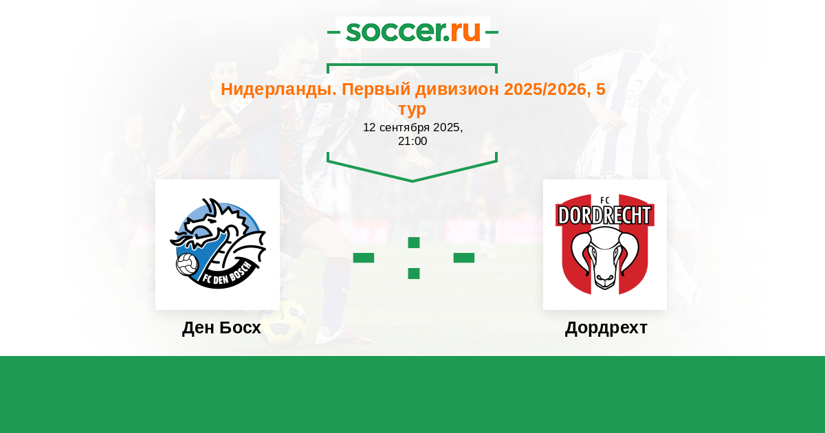 Нидерланды. Первый дивизион 06.09.2020 Ден Босх Логотип футбольный клуб Ден Босх (Хертогенбос) 2:1 Логотип футбольный клуб Дордрехт Дордрехт