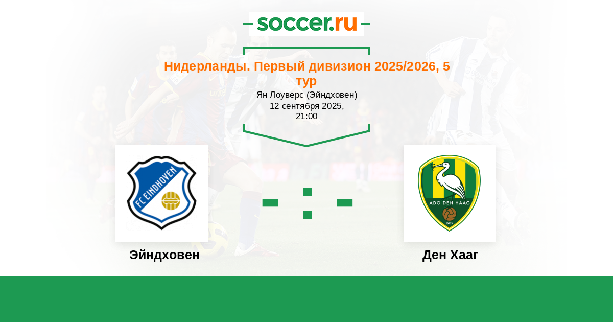 Нидерланды. Первый дивизион 05.09.2021 Ден Хааг Логотип футбольный клуб Ден Хааг (Гаага) 4:2 Логотип футбольный клуб Эйндховен Эйндховен