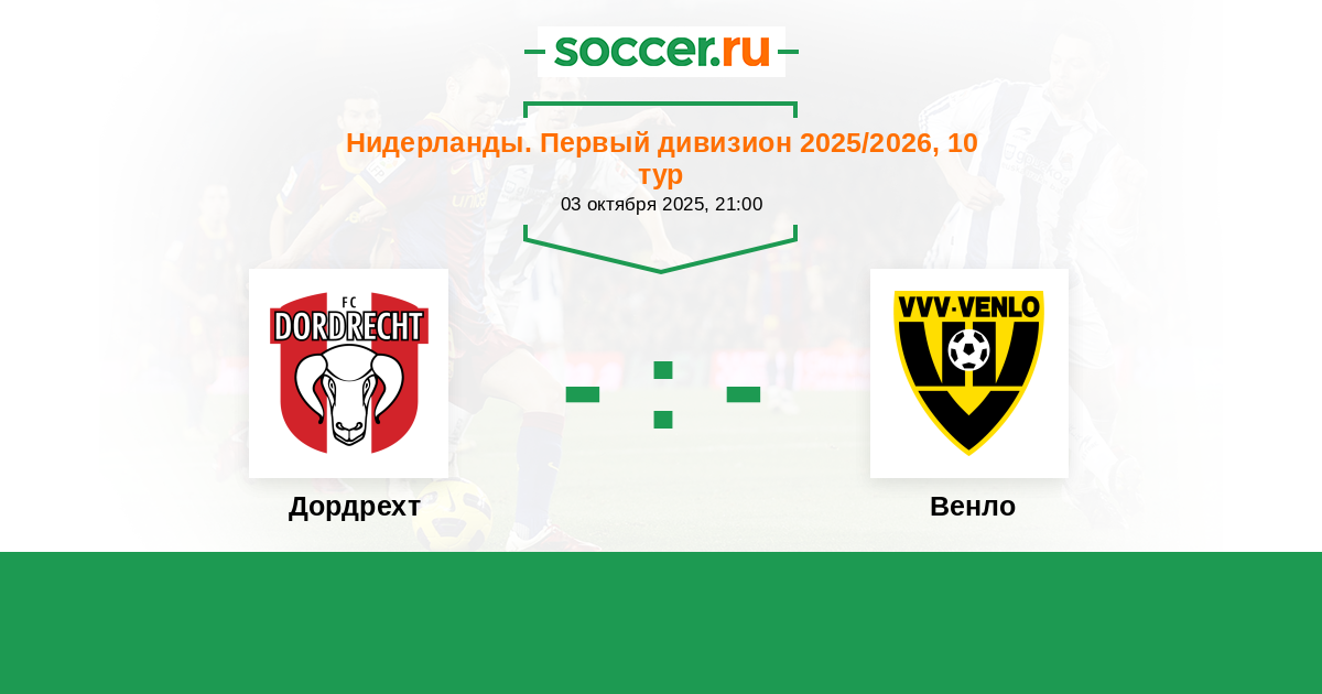 Нидерланды. Первый дивизион 19.12.2025 Венло Логотип футбольный клуб Венло 3:1 Логотип футбольный клуб Дордрехт Дордрехт