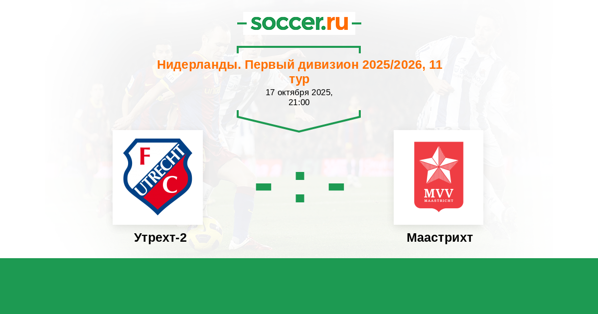 Нидерланды. Первый дивизион 20.10.2017 Утрехт-2 Логотип футбольный клуб Утрехт-2 2:1 Логотип футбольный клуб Маастрихт Маастрихт