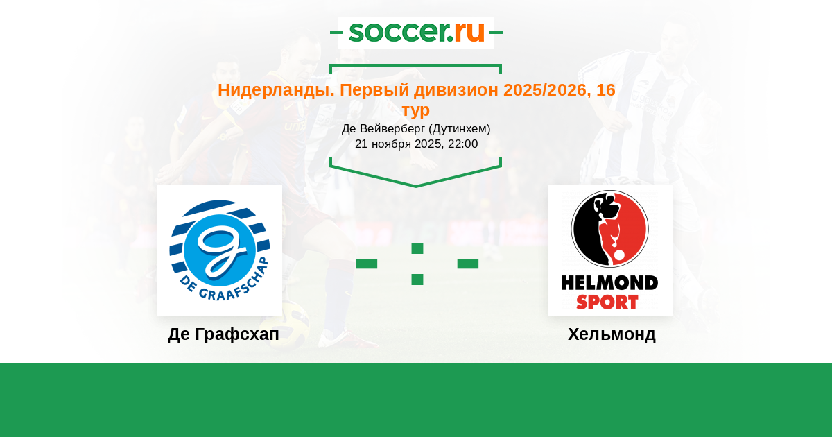 Нидерланды. Первый дивизион 10.12.2021 Де Графсхап Логотип футбольный клуб Де Графсхап (Дутинхем) 0:1 Логотип футбольный клуб Хельмонд Хельмонд