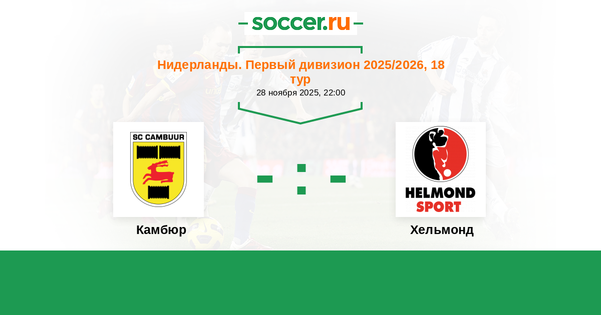 Нидерланды. Первый дивизион 18.04.2025 Хельмонд Логотип футбольный клуб Хельмонд 1:1 Логотип футбольный клуб Камбюр (Лиуварден) Камбюр
