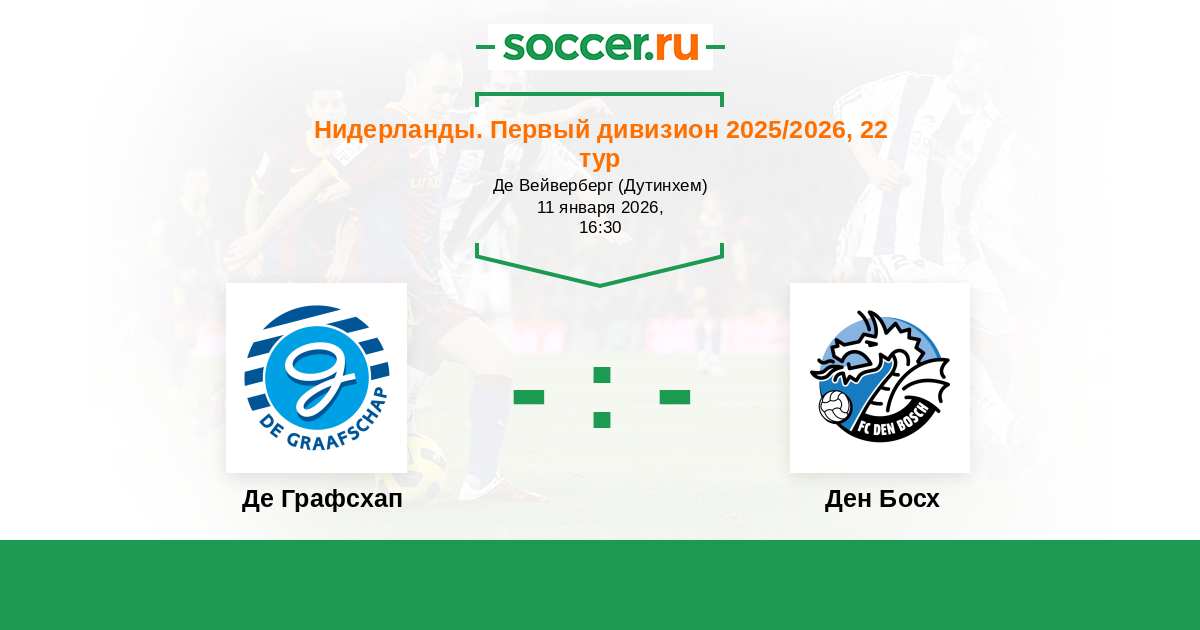 Нидерланды. Первый дивизион 27.11.2017 Ден Босх Логотип футбольный клуб Ден Босх (Хертогенбос) 1:1 Логотип футбольный клуб Де Графсхап (Дутинхем) Де Графсхап