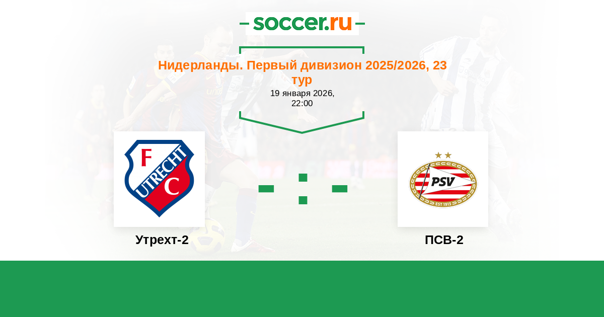 Нидерланды. Первый дивизион 08.03.2019 ПСВ-2 Логотип футбольный клуб ПСВ-2 (Эйндховен) 3:1 Логотип футбольный клуб Утрехт-2 Утрехт-2