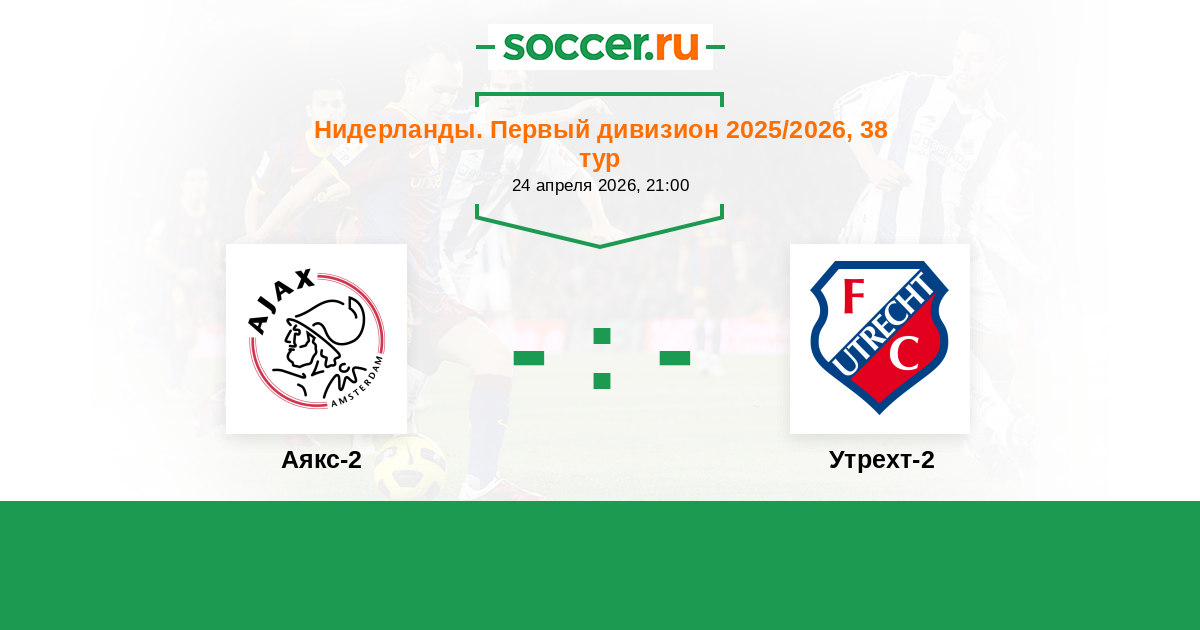 Нидерланды. Первый дивизион 18.10.2024 Аякс-2 Логотип футбольный клуб Аякс-2 (Амстердам) 0:0 Логотип футбольный клуб Утрехт-2 Утрехт-2