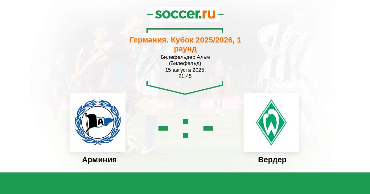 Германия. Кубок 25.02.2025 Арминия Логотип футбольный клуб Арминия (Билефельд) 2:1 Логотип футбольный клуб Вердер (Бремен) Вердер