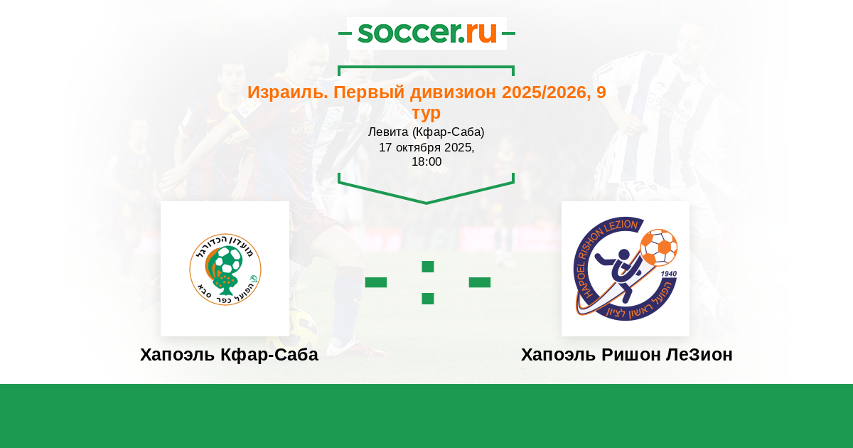 Израиль. Первый дивизион 01.09.2017 Хапоэль Ришон ЛеЗион Логотип футбольный клуб Хапоэль Ришон ЛеЗион 1:1 Логотип футбольный клуб Хапоэль Кфар-Саба Хапоэль Кфар-Саба
