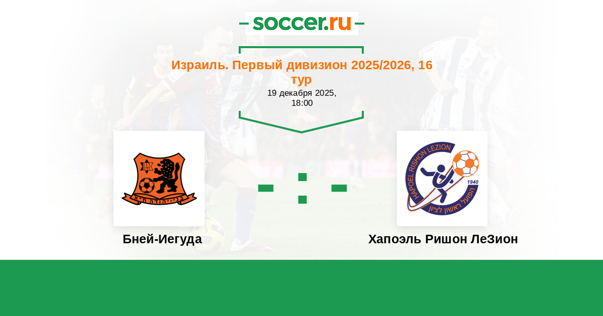 Израиль. Первый дивизион 24.08.2025 Хапоэль Ришон ЛеЗион Логотип футбольный клуб Хапоэль Ришон ЛеЗион 0:0 Логотип футбольный клуб Бней-Иегуда (Тель-Авив) Бней-Иегуда