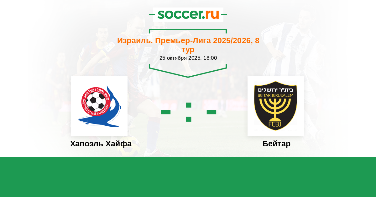 Израиль. Премьер-Лига 24.10.2021 Бейтар Логотип футбольный клуб Бейтар (Иерусалим) 2:1 Логотип футбольный клуб Хапоэль Хайфа Хапоэль Хайфа