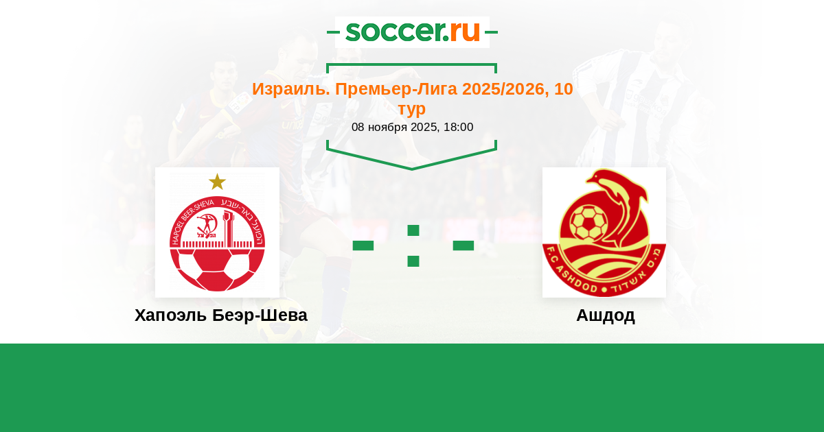Израиль. Премьер-Лига 17.10.2010 Ашдод Логотип футбольный клуб Ашдод 0:3 Логотип футбольный клуб Хапоэль Беэр-Шева Хапоэль Беэр-Шева