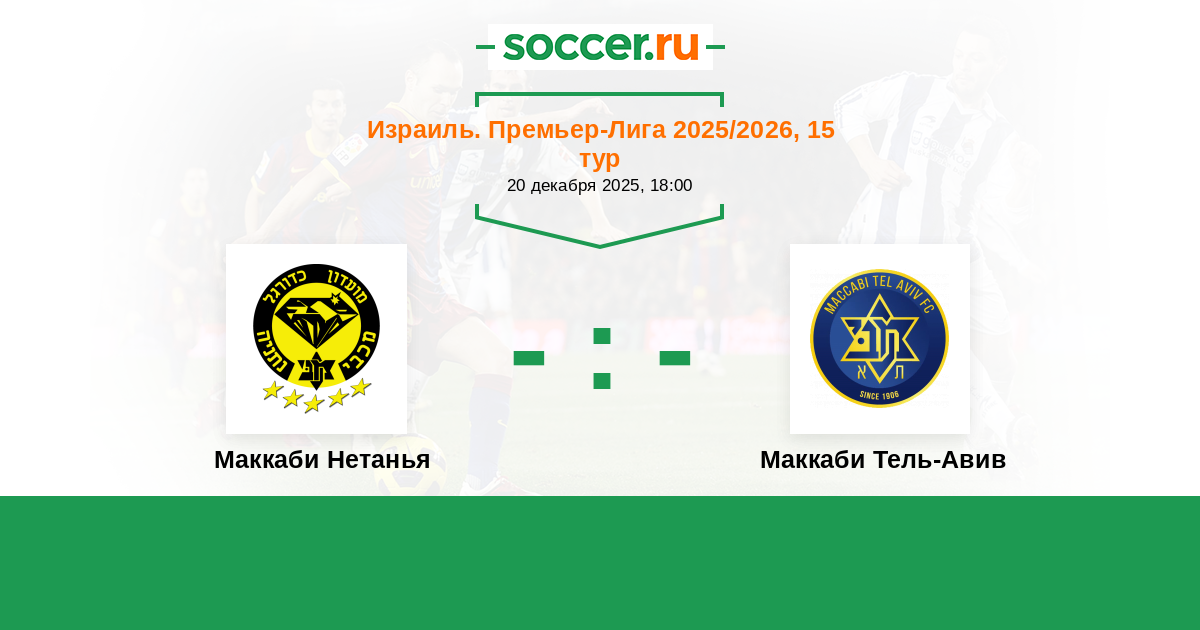 Израиль. Премьер-Лига 22.04.2023 Маккаби Нетанья Логотип футбольный клуб Маккаби Нетанья 0:0 Логотип футбольный клуб Маккаби Тель-Авив Маккаби Тель-Авив