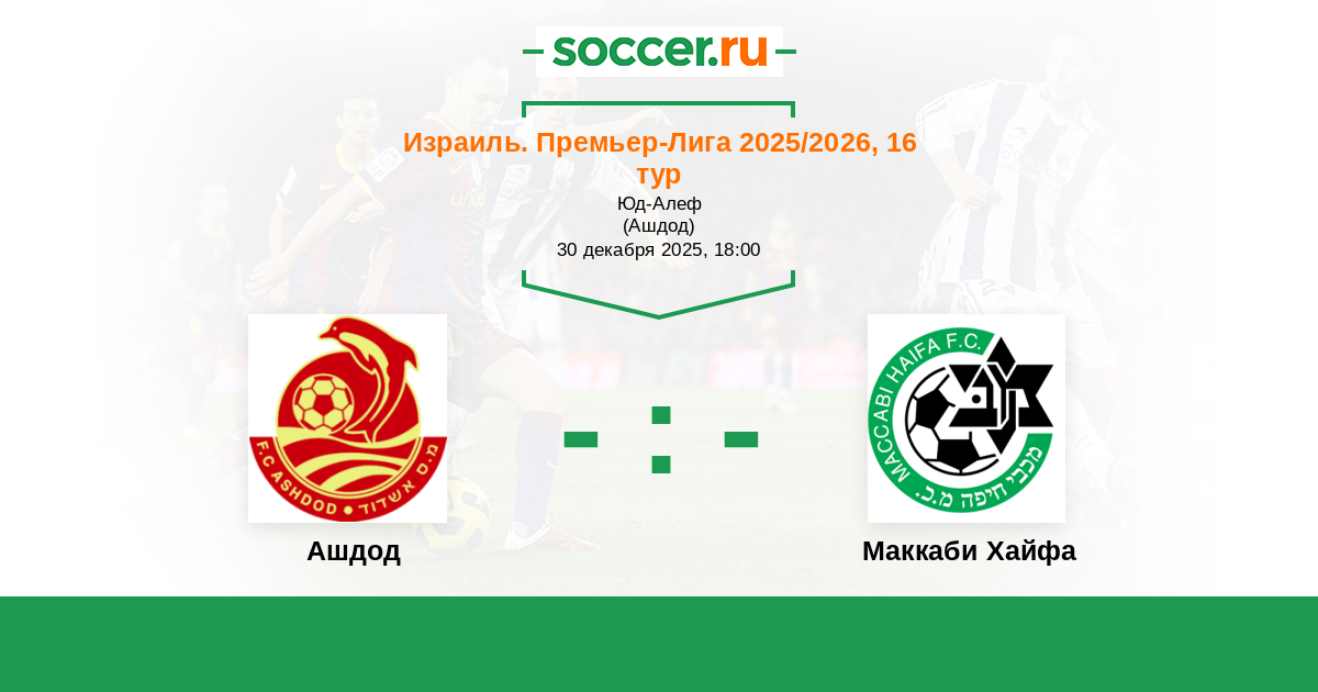 Израиль. Премьер-Лига 20.12.2023 Маккаби Хайфа Логотип футбольный клуб Маккаби Хайфа 4:0 Логотип футбольный клуб Ашдод Ашдод