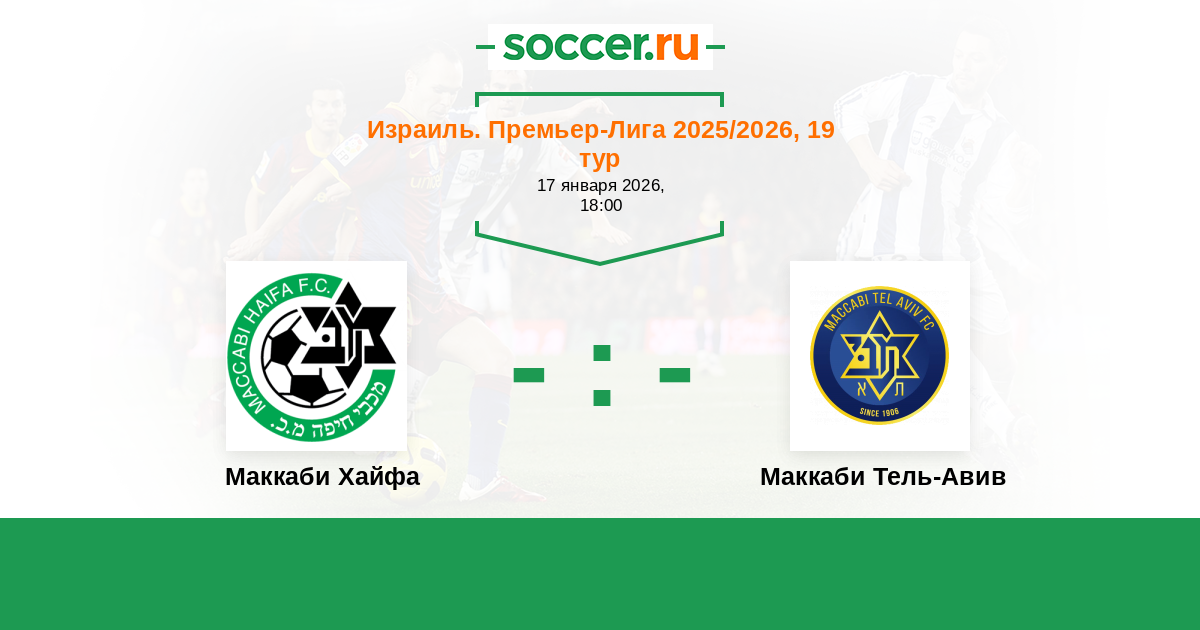 Израиль. Премьер-Лига 15.01.2018 Маккаби Хайфа Логотип футбольный клуб Маккаби Хайфа 1:3 Логотип футбольный клуб Маккаби Тель-Авив Маккаби Тель-Авив
