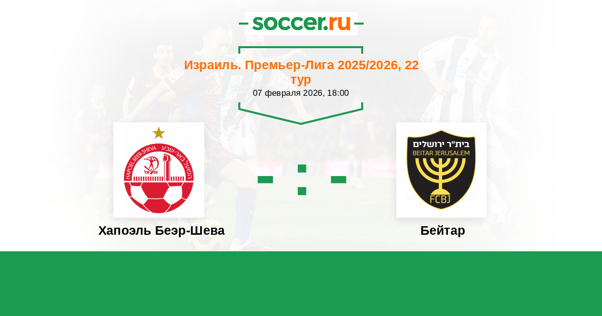 Израиль. Премьер-Лига 18.02.2019 Хапоэль Беэр-Шева Логотип футбольный клуб Хапоэль Беэр-Шева 3:1 Логотип футбольный клуб Бейтар (Иерусалим) Бейтар