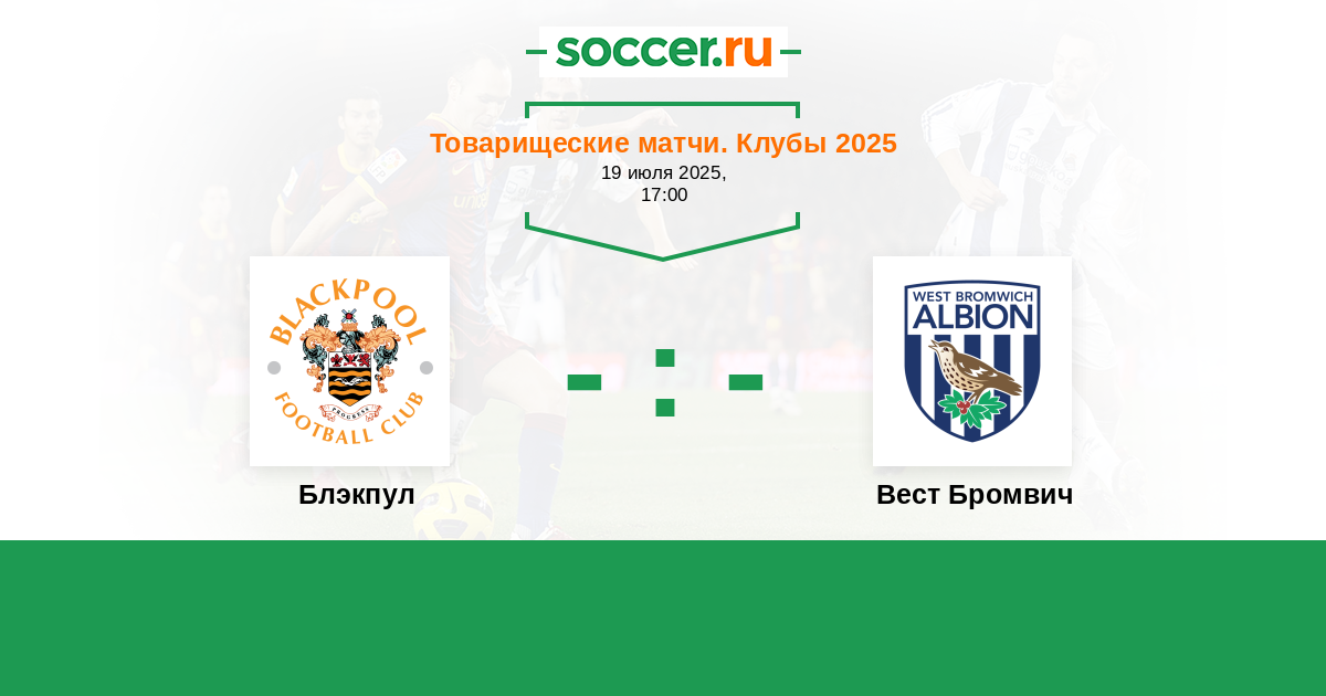 Товарищеские матчи. Клубы 23.07.2024 Вест Бромвич Логотип футбольный клуб Вест Бромвич 1:2 Логотип футбольный клуб Блэкпул Блэкпул