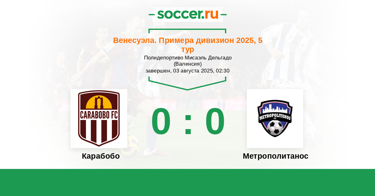 Венесуэла. Примера дивизион 08.06.2025 Карабобо Логотип футбольный клуб Карабобо (Валенсия) 2:2 Логотип футбольный клуб Метрополитанос (Лос-Текес) Метрополитанос