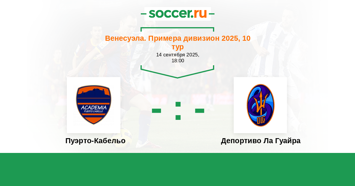 Венесуэла. Примера дивизион 15.09.2022 Пуэрто-Кабельо Логотип футбольный клуб Пуэрто-Кабельо 1:1 Логотип футбольный клуб Депортиво Ла Гуайра (Каракас) Депортиво Ла Гуайра
