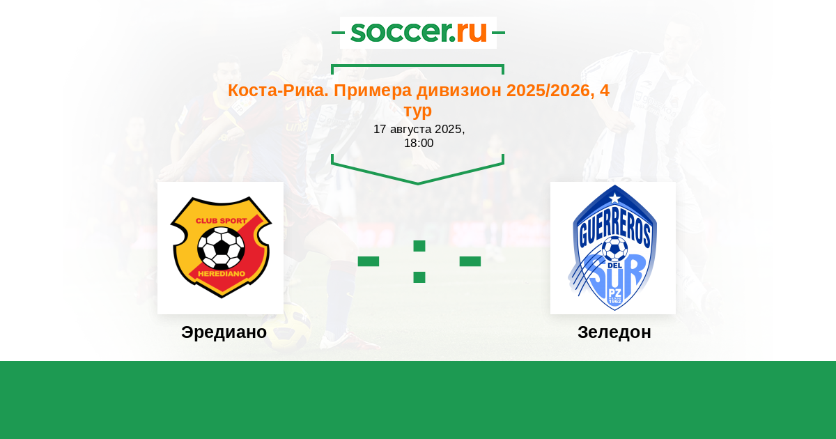 Коста-Рика. Примера дивизион 17.09.2017 Эредиано Логотип футбольный клуб Эредиано 2:1 Логотип футбольный клуб Зеледон (Сан Исидро де Эль Хенерал) Зеледон