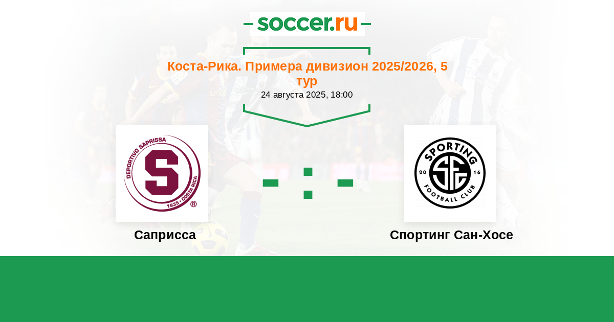Коста-Рика. Примера дивизион 26.09.2022 Саприсса Логотип футбольный клуб Саприсса (Сан Хосе) 2:1 Логотип футбольный клуб Спортинг Сан-Хосе Спортинг Сан-Хосе