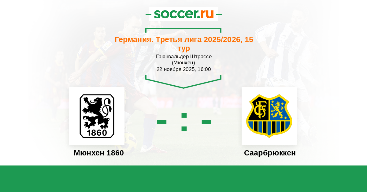 Германия. Третья лига 23.10.2021 Саарбрюккен Логотип футбольный клуб Саарбрюккен 1:1 Логотип футбольный клуб Мюнхен 1860 Мюнхен 1860