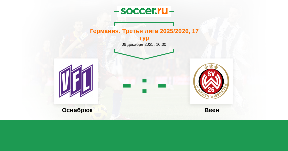 Германия. Третья лига 28.09.2024 Веен Логотип футбольный клуб Веен (Висбаден) 2:1 Логотип футбольный клуб Оснабрюк Оснабрюк