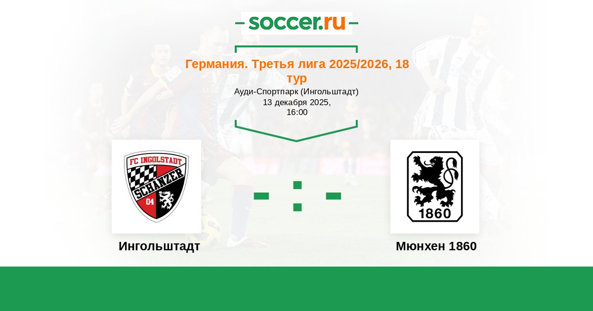 Германия. Третья лига 08.02.2025 Мюнхен 1860 Логотип футбольный клуб Мюнхен 1860 1:1 Логотип футбольный клуб Ингольштадт Ингольштадт