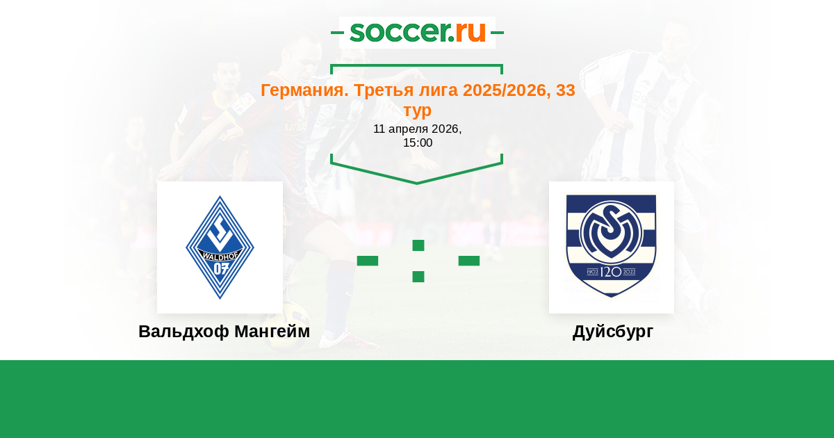 Германия. Третья лига 10.04.2021 Дуйсбург Логотип футбольный клуб Дуйсбург 1:1 Логотип Вальдхоф Мангейм Вальдхоф Мангейм