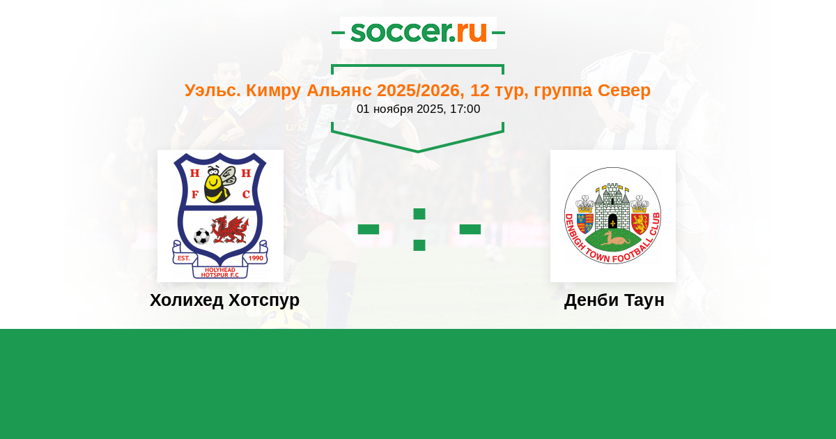 Уэльс. Кимру Альянс 13.11.2015 Денби Таун Логотип футбольный клуб Денби Таун (Денбиг) 2:1 Логотип футбольный клуб Холихед Хотспур Холихед Хотспур