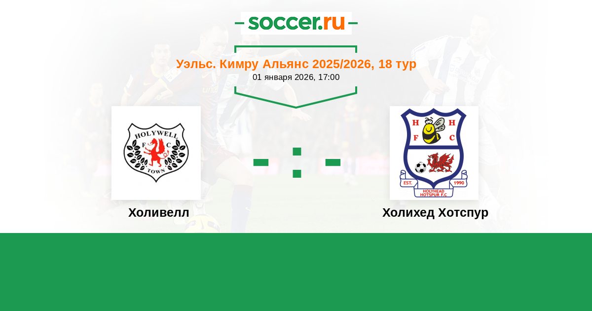 Уэльс. Кимру Альянс 14.01.2017 Холивелл Логотип футбольный клуб Холивелл 1:1 Логотип футбольный клуб Холихед Хотспур Холихед Хотспур
