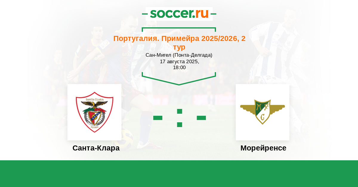 Португалия. Примейра 24.01.2026 Морейренcе Логотип футбольный клуб Морейренcе (Морейра-де-Конегуш) 1:0 Логотип футбольный клуб Санта-Клара (Понта-Делгада) Санта-Клара