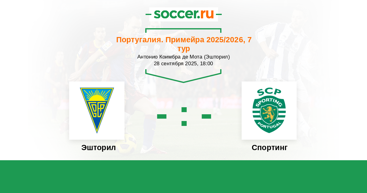 Португалия. Примейра 27.08.2017 Спортинг Логотип футбольный клуб Спортинг (Лиссабон) 2:1 Логотип футбольный клуб Эшторил Эшторил