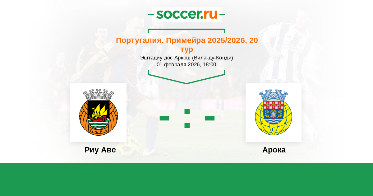Португалия. Примейра 10.02.2025 Арока Логотип футбольный клуб Арока 1:1 Логотип футбольный клуб Риу Аве (Вила-ду-Конди) Риу Аве