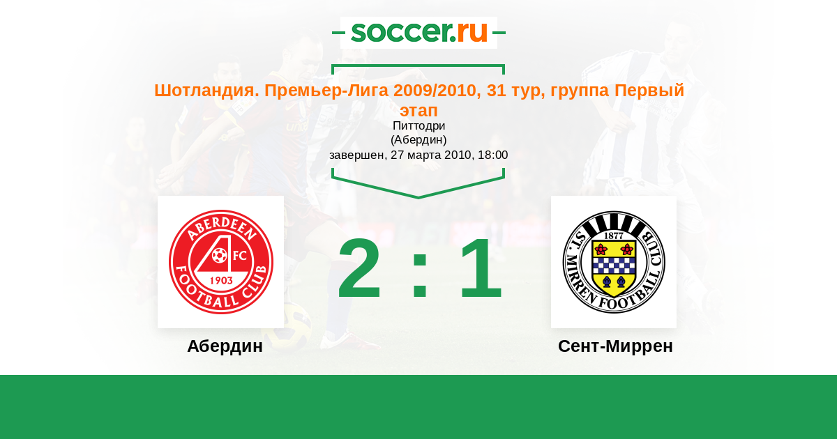 Шотландия. Премьер-Лига 30.10.2010 Сент-Миррен Логотип футбольный клуб Сент-Миррен (Пейсли) 2:1 Логотип футбольный клуб Абердин Абердин