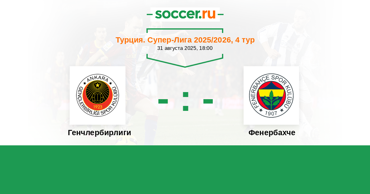 Товарищеские матчи. Клубы 26.07.2021 Генчлербирлиги Логотип футбольный клуб Генчлербирлиги (Анкара) 0:4 Логотип футбольный клуб Фенербахче (Стамбул) Фенербахче