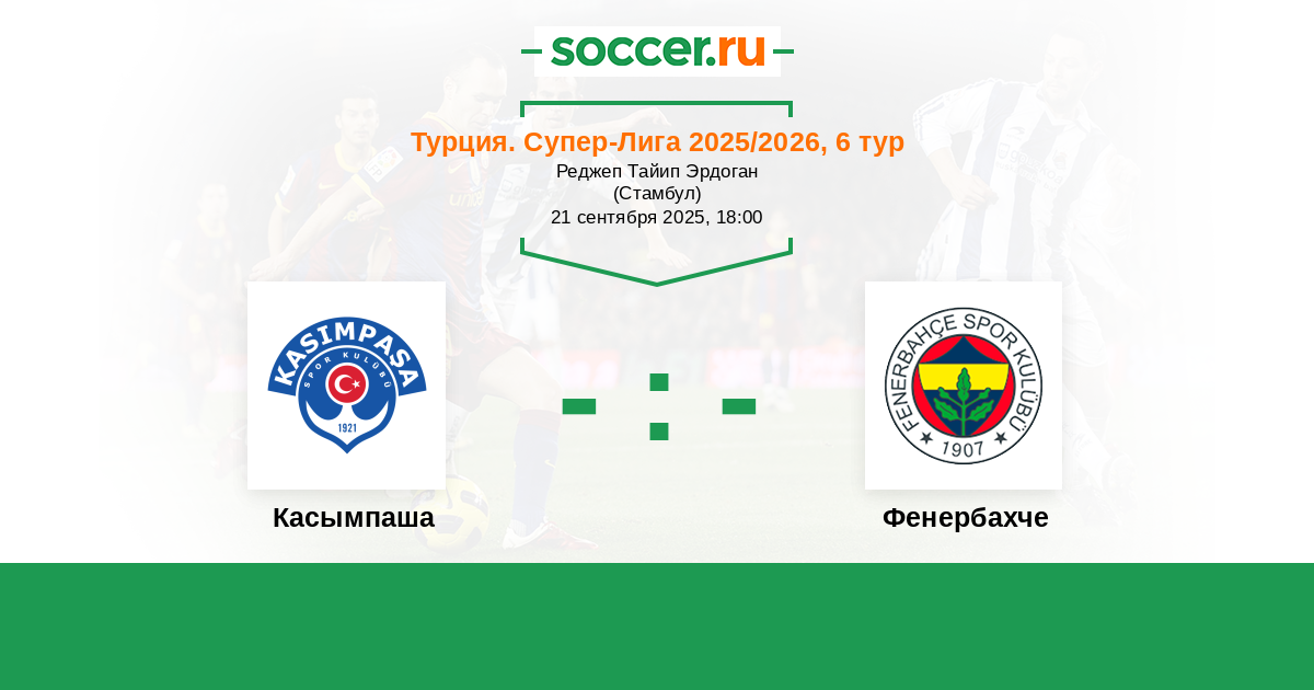 Турция. Суперлига 03.10.2021 Фенербахче Логотип футбольный клуб Фенербахче (Стамбул) 2:1 Логотип футбольный клуб Касымпаша (Стамбул) Касымпаша