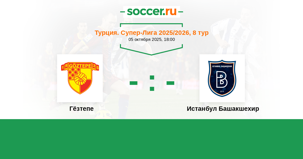 Турция. Суперлига 01.10.2017 Гёзтепе Логотип футбольный клуб Гёзтепе (Измир) 1:2 Логотип футбольный клуб Истанбул Башакшехир (Стамбул) Истанбул Башакшехир