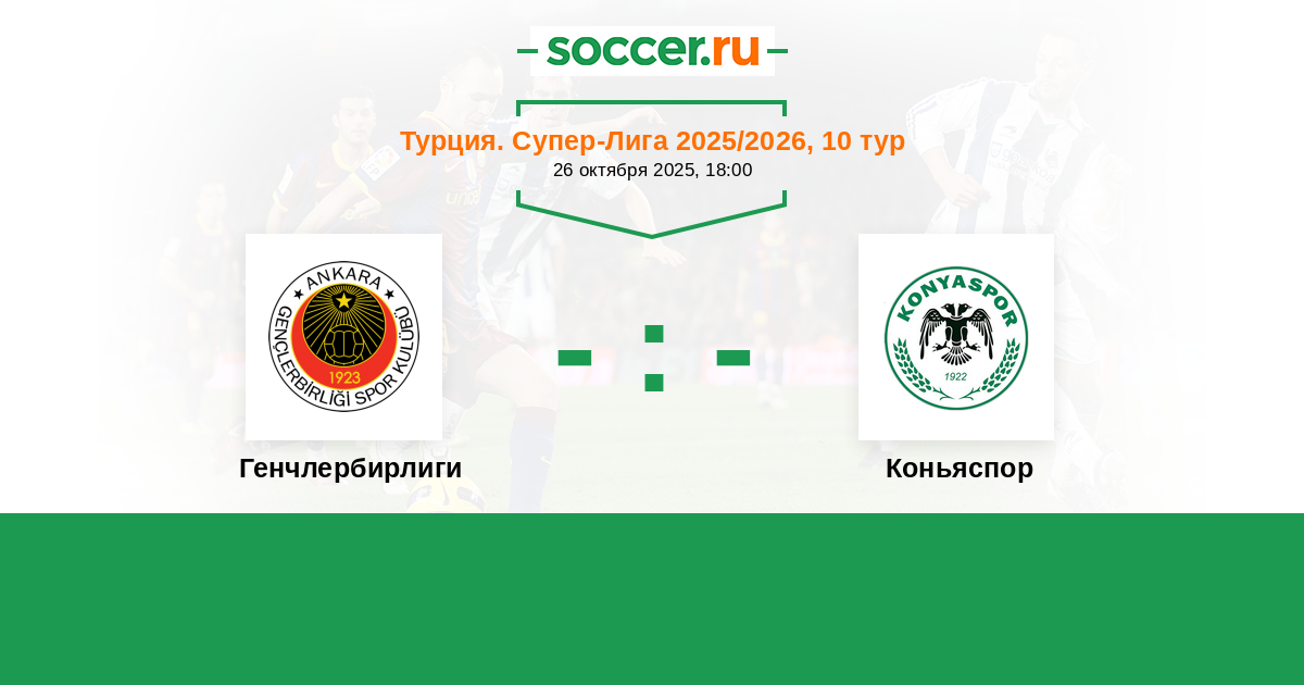 Турция. Суперлига 22.09.2007 Коньяспор Логотип футбольный клуб Коньяспор 1:1 Логотип футбольный клуб Генчлербирлиги (Анкара) Генчлербирлиги