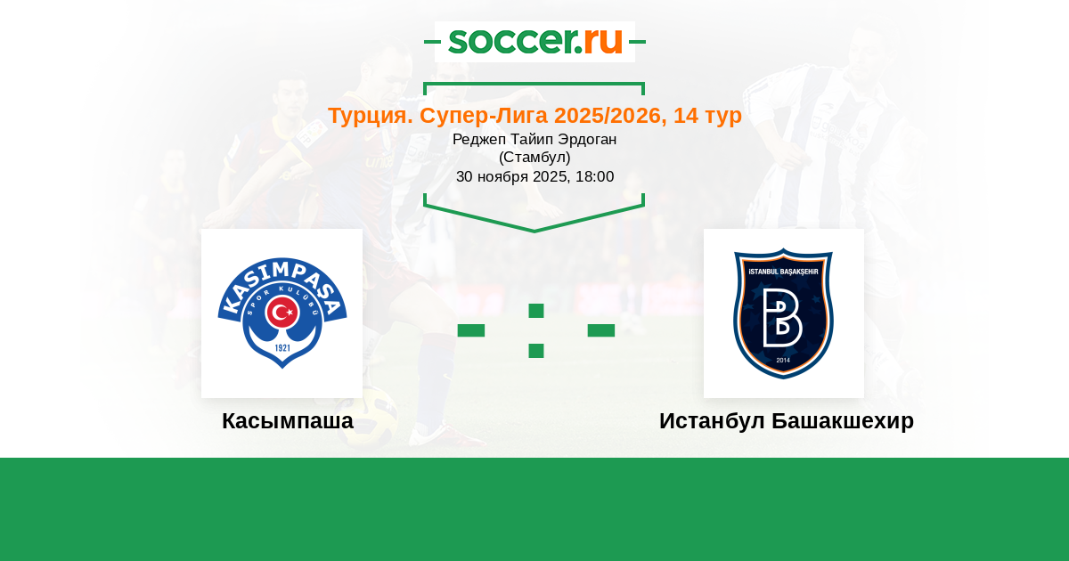 Турция. Суперлига 23.12.2024 Истанбул Башакшехир Логотип футбольный клуб Истанбул Башакшехир (Стамбул) 2:2 Логотип футбольный клуб Касымпаша (Стамбул) Касымпаша